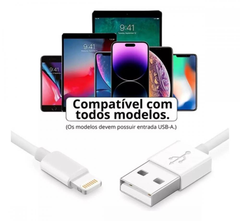 O cabo USB 2.0 de 1 metro conecta o seu iPhone, iPad ou iPod com conector Lightning à porta USB do seu computador. Com ele você sincroniza o dispositivo e carrega a bateria. Você também pode conectá-lo o cabo a um carregador Apple USB para plugar na tomada. Cabo de Lightning para USB Foxconn para Apple